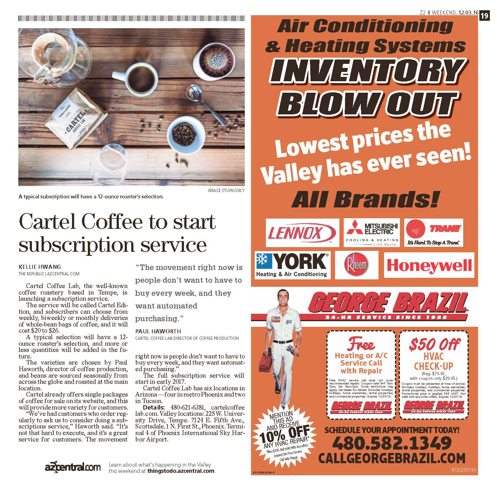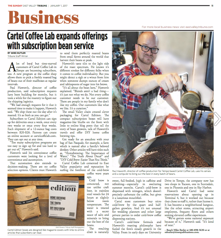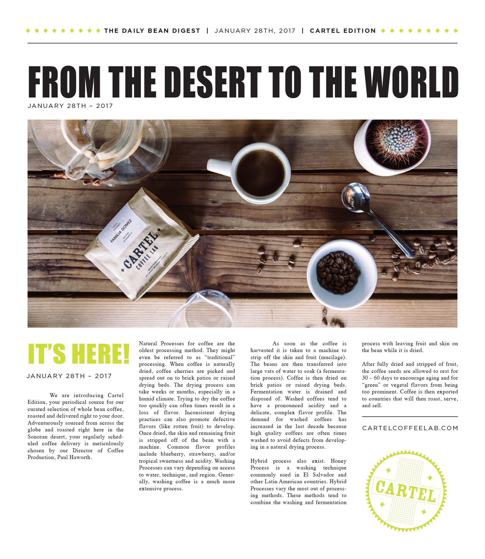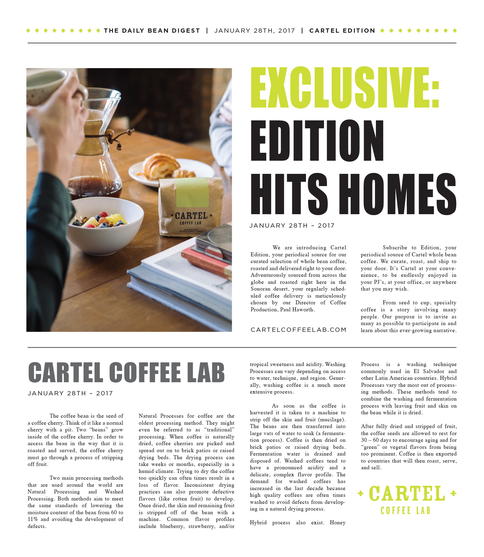 Cartel Edition is a brand new coffee subscription model from Cartel Roasting Co. While at AWE Collective, we had the opportunity to help create the packaging for what that would look like, a limited run of special promotional goods, market the campaign for it—teasing the product via social avenues with a countdown to the launch, and run email campaigns reminding Cartel lovers of the added benefits of delivering their coffee right to their door, all while pointing them to the Edition landing page to sign up.