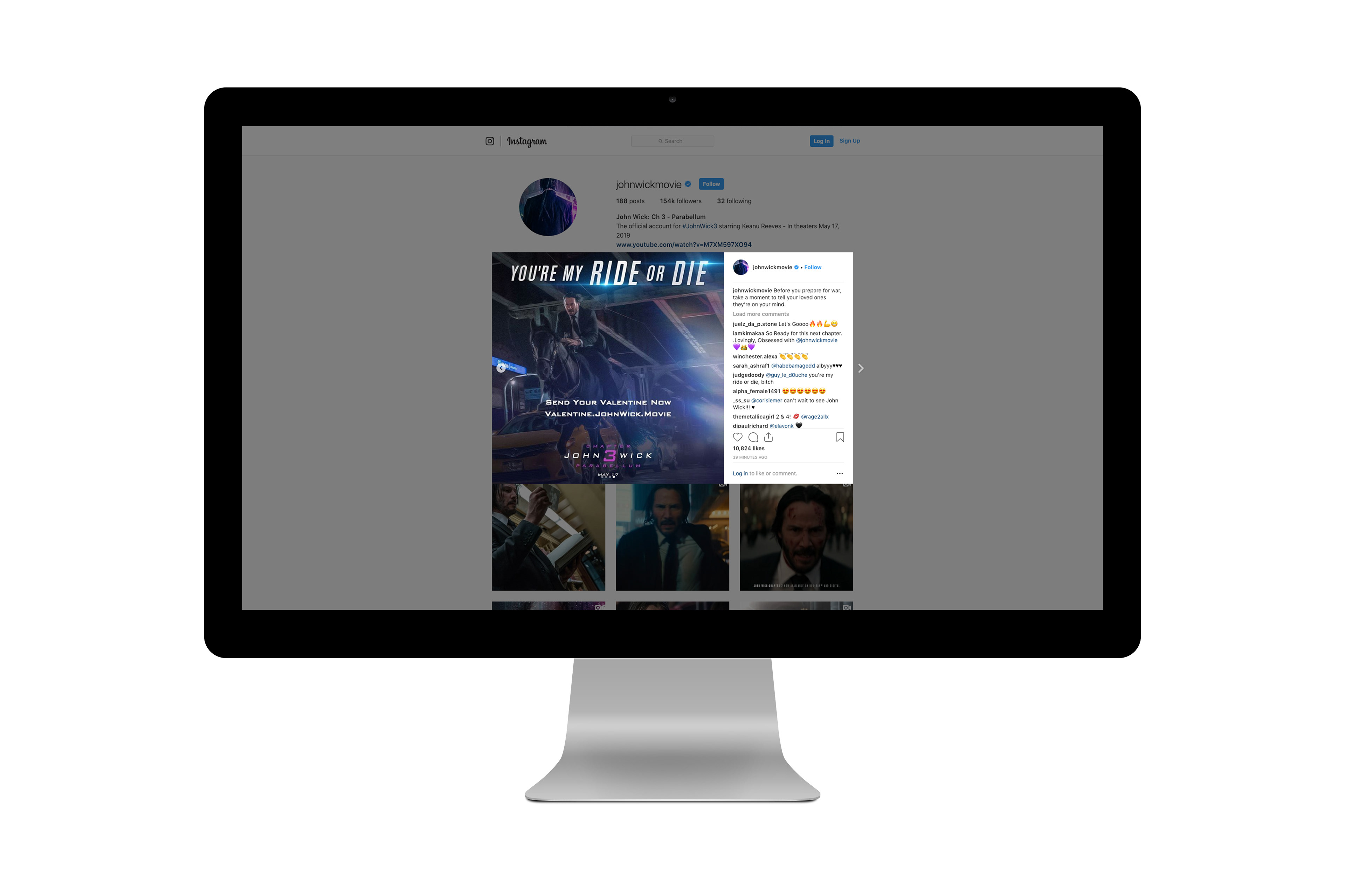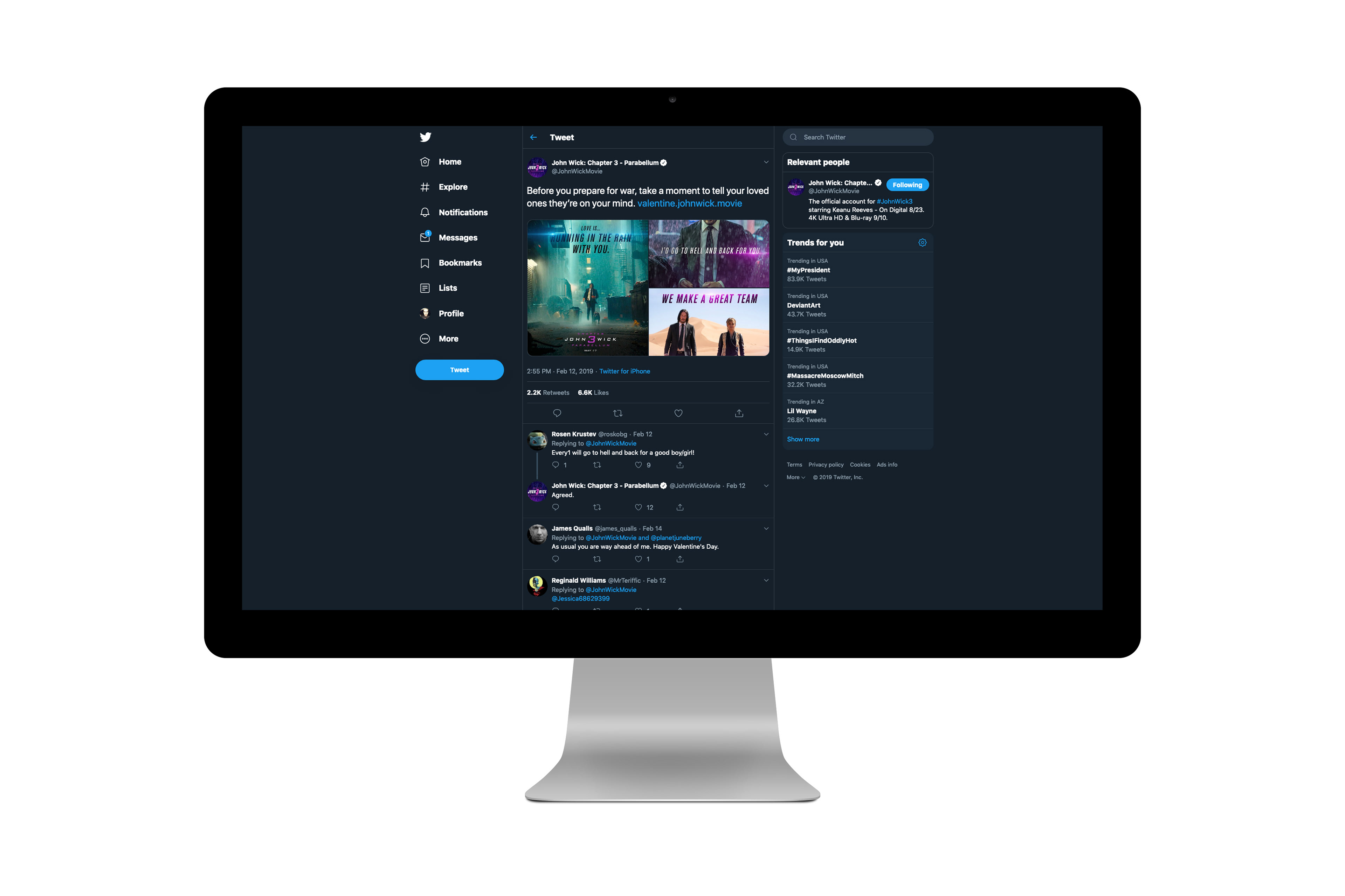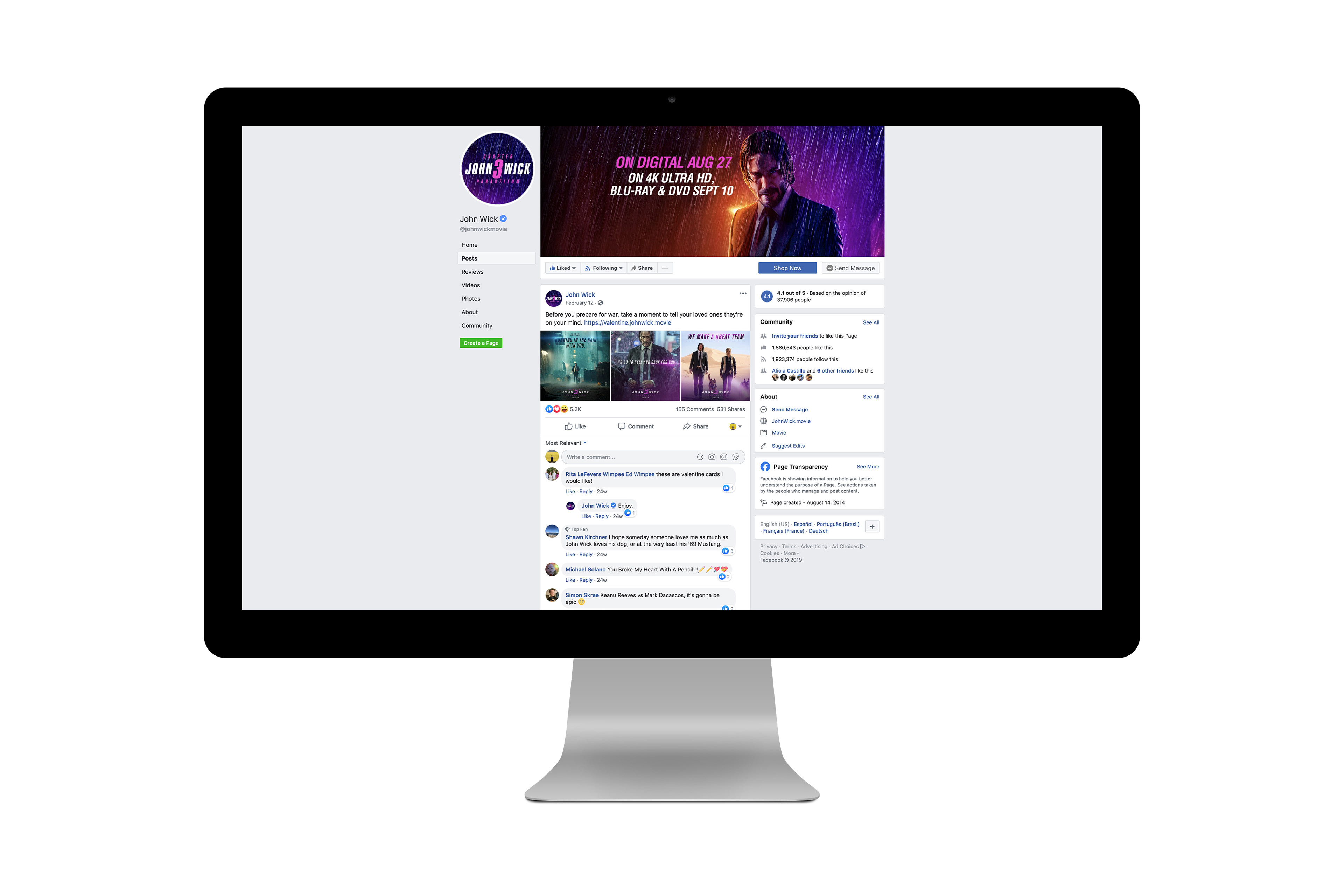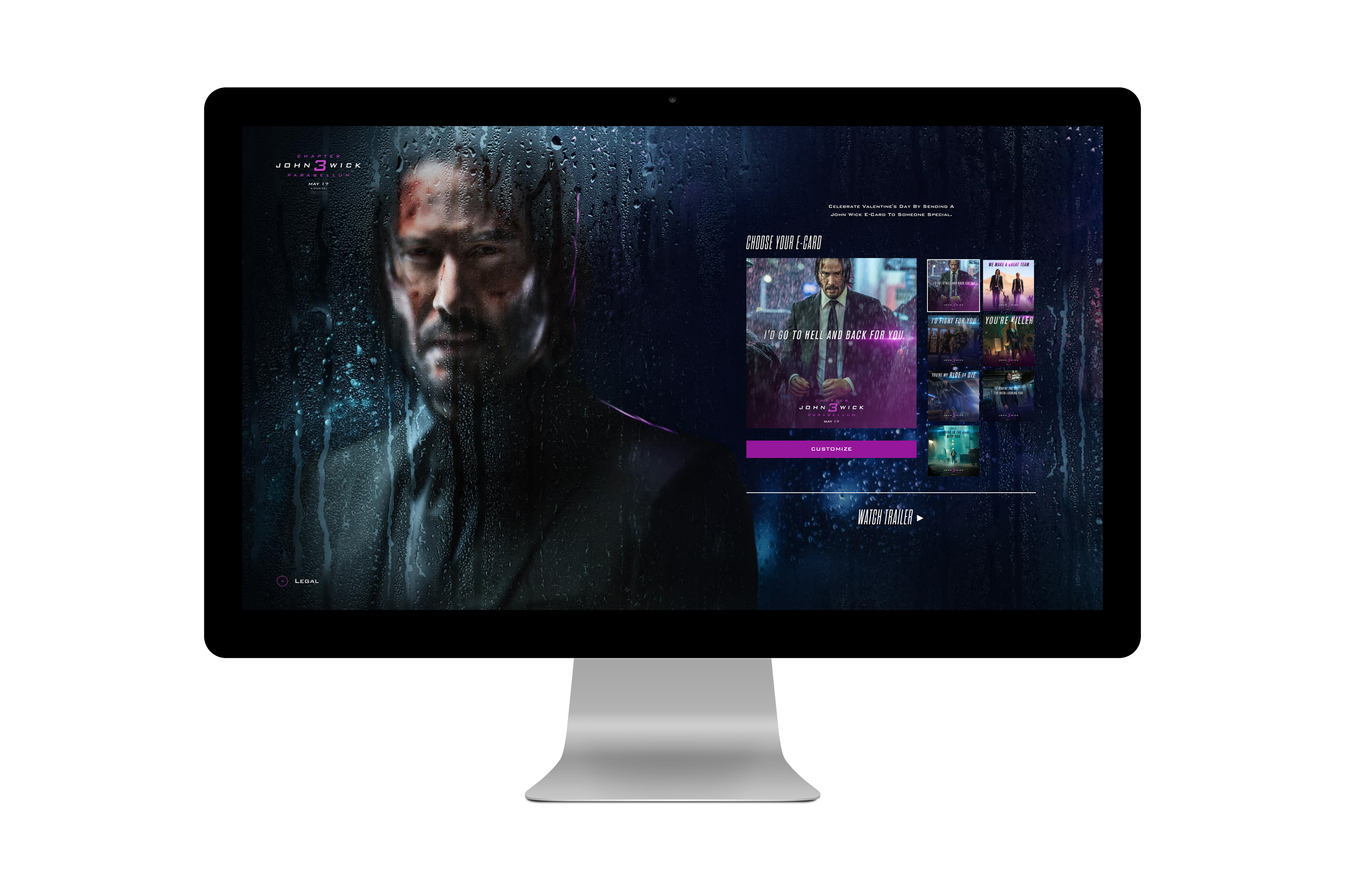 At Sandoval, we were tasked with creating a Valentine's Day-themed card generator landing page promoting the third iteration of the John Wick franchise, starring Keanu Reeves and Halle Berry. It took heaps of research (pretty much, watching the entire series of movies in a day after work), pushing headlines out of our brains at light-speed (the turnaround for this one was about 2 weeks), putting together dozens of concepts (so in reality, more than a few dozens), familiarizing ourselves with the world of The Continental and it's terminology (seriously, the arms dealer completes transactions in fine-dining terminology), and gawking over John Wick's general badassery (while crying over the loss of his loyal companion). The project turned out to be a wild success with people sharing their creations across all of their social channels. Just to put it into perspective, that's a whopping 2.6 million people following on Facebook alone, with 579k people on Instagram, 300k people on Twitter, and an outpouring of love from the 89k dedicated followers on the r/JohnWick subreddit. People sent a lot of love. Keanu makes being excommunicado look not so bad.